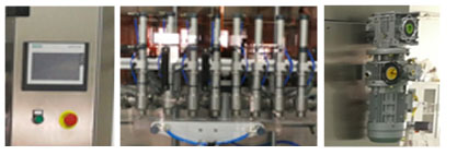 8、灌裝頭配置日本松下光電系統(tǒng),能準(zhǔn)確識(shí)別灌裝瓶定位狀況,實(shí)現(xiàn)有瓶灌裝、無瓶少瓶不灌裝。