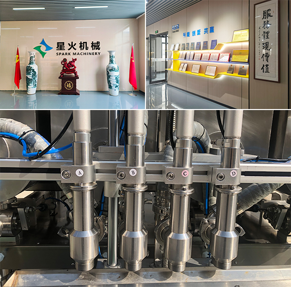 1、采用四頭同步灌裝原理,能夠同時執(zhí)行四個容器的灌裝工作,提高生產(chǎn)效率,縮減人工成本。