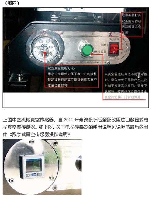 按產(chǎn)品工藝要求在機(jī)器面板真空表上設(shè)定正確的真空度值 |