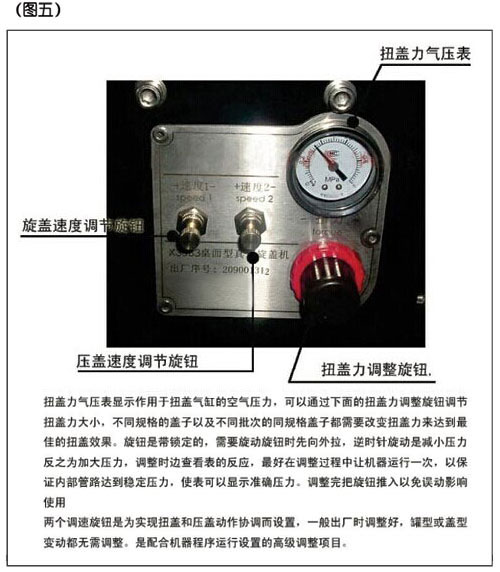 檢查進(jìn)氣壓力,確保進(jìn)氣總壓在5公斤左右,根據(jù)蓋需要的擰蓋力,調(diào)整扭力旋鈕到適當(dāng)壓力。 |